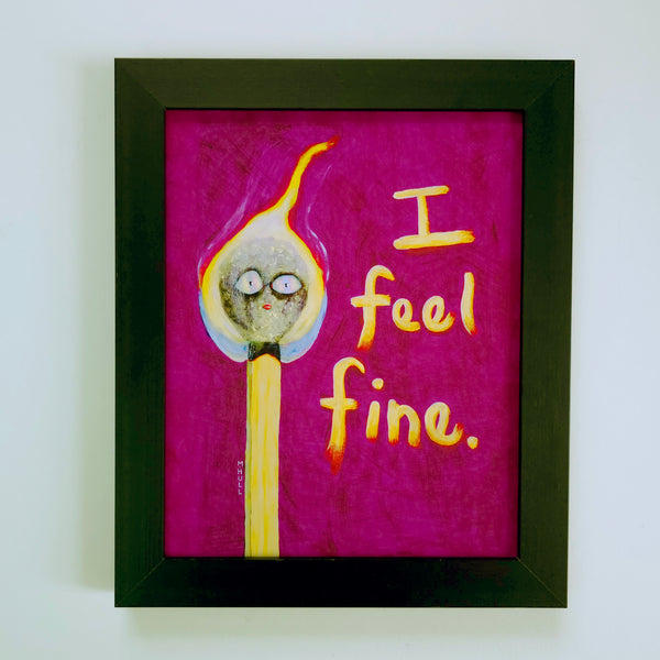 Maybe your head’s on fire. Maybe the world is too. But sure, you’re fine. This flaming match is doing its best, face wide-eyed and blazing, vibes purple.