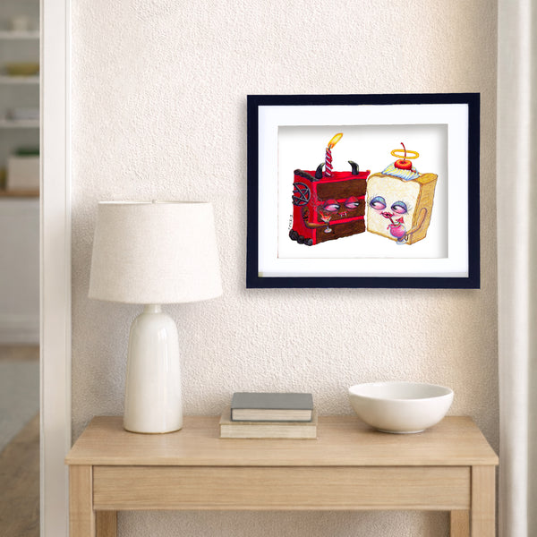 One’s frosted sin, the other’s whipped purity—but sparks are flying. Devil’s Food and Angel Food are making eyes at each other, and things are heating up. Is it love? Lust? Who cares. It's a Hell of a cocktail party these two are at.
